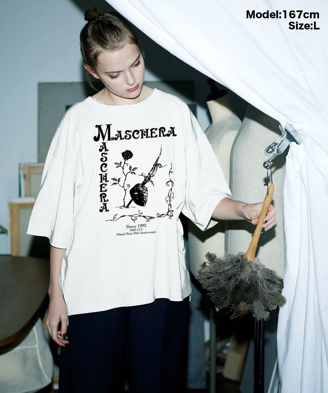 MASCHERAインディーズ活動最初期に制作された幻のTシャツが復刻verとして再来!カラーは当時ブラックのみでしたが、今回の復刻版では新たにホワイトも追加。ウルトラレアなデザインとメモリアルなイベント表記が貴方をプレミアムな場所へと誘います。
